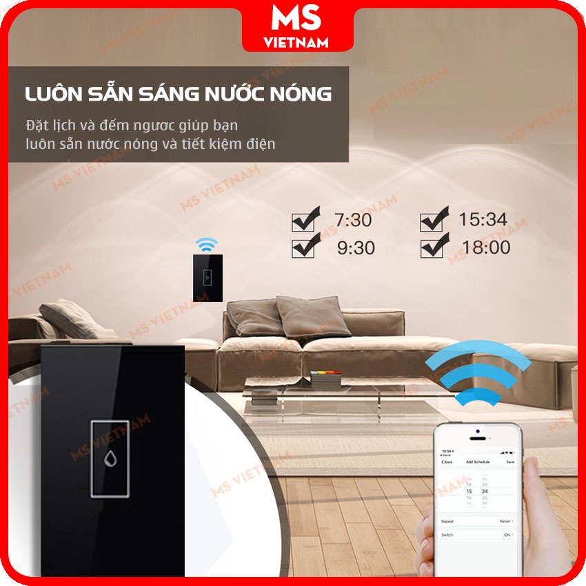 Công Tắc Bình Nóng Lạnh Thông Minh Tuya - SIÊU TẢI 20A - Chuẩn Mỹ - App Tuya, Smartlife - BH 1 Đổi 1 - MS Vietnam