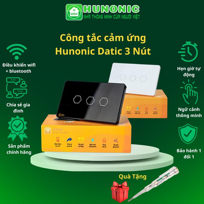 Công tắc cảm ứng Hunonic Datic 3 Nút kết nối Wifi điều khiển mọi thiết bị từ xa qua điện thoại, 2 màu trắng và đen