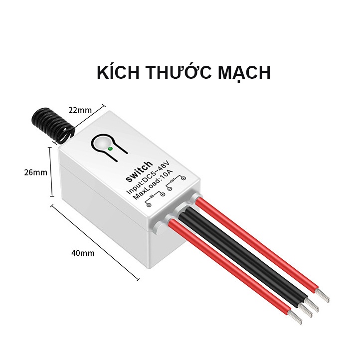 Công tắc điều khiển từ xa không dây dùng điện 1 chiều 5v 6v 12v 24v 36v 48V 1 cổng (1 kênh xuyên tường không dây) mạch nhỏ có thể giấu trong đế âm tường