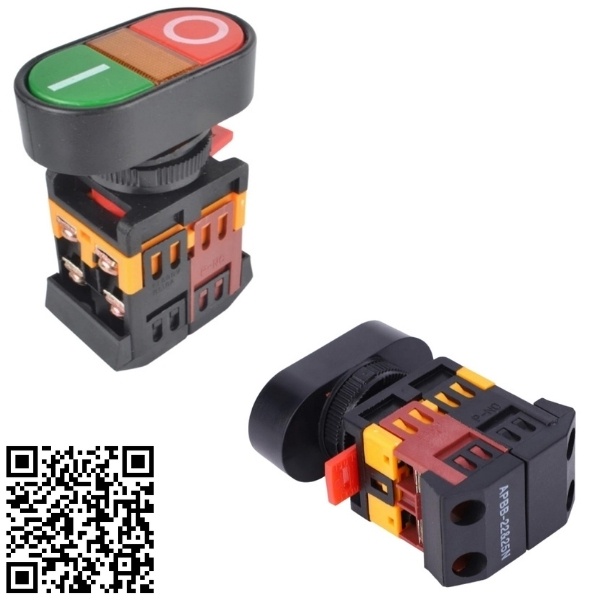 Công tắc nhấn đôi APBB-22&25N on-off có đèn hiển thị điện áp 220VAC là sản phẩm nút nhấn thường được sử dụng để tắt mở, chuyển mạch, đóng mạch trong các tủ điện công nghiệp, tủ điện máy cnc và các loại máy khác: kiểm soát các khởi động điện từ, contactor, relay và điều khiển tự động các mạch điện….