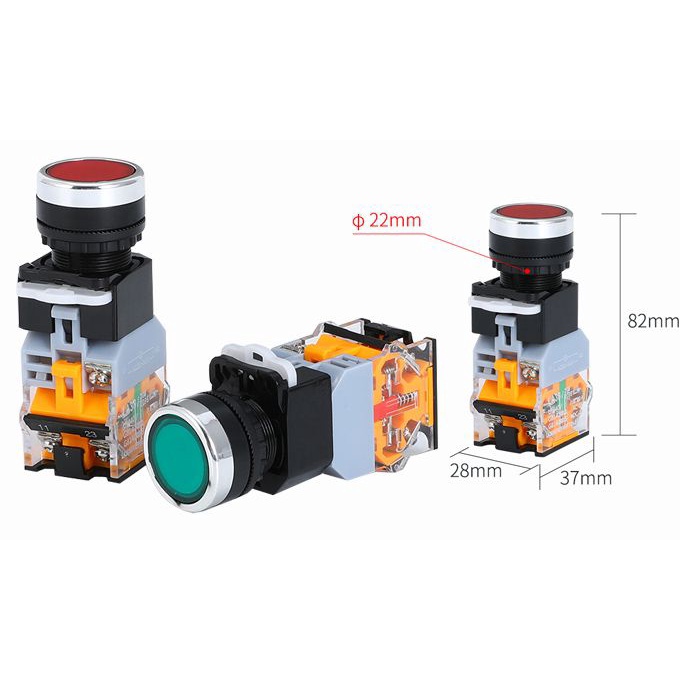 Nút nhấn giữ hai màu xanh và đỏ.Khớp đèn báo sáng điện 220volt