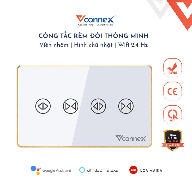 Công tắc rèm thông minh Vconnex - Dành cho rèm đôi, có viền nhôm