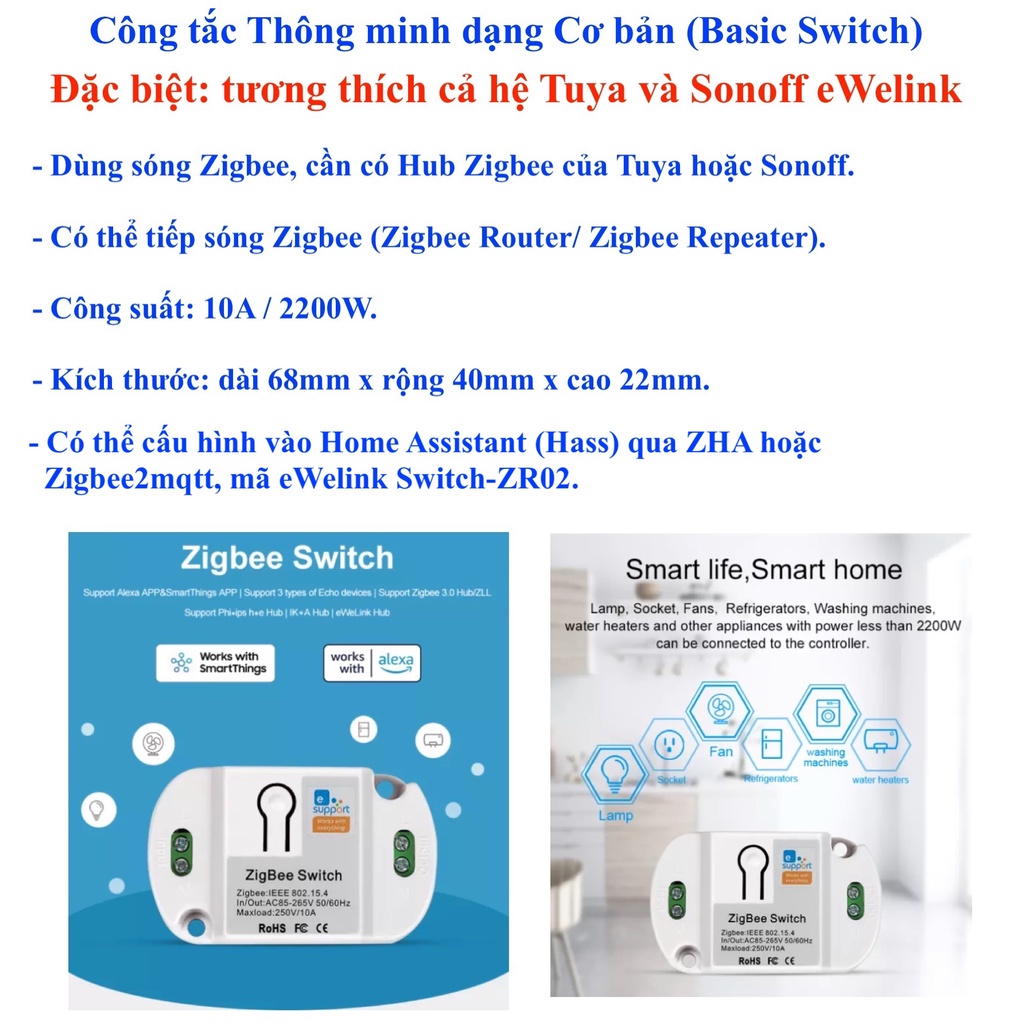 Giới thiệu Công tắc thông minh Tuya Basic , kết nối Wifi, Zigbee , RF433 , App Smart Life hoặc Tuya -