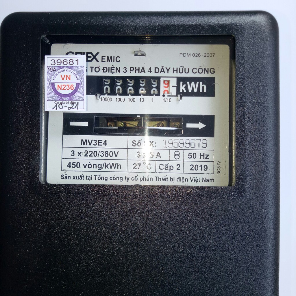 +Công Tơ Điện ( Đồng Hồ Điện) 3 Pha 3x(5A) 220/380V EMIC (Loại bắt Giáng Tiếp) có kiểm định.Bảo hành: 3 năm
