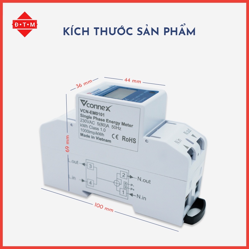 Công Tơ Điện Tử Wifi Thông Minh 1 Pha - Bộ Giám Sát Tiêu Thụ Điện Năng Thông Minh Vconnex