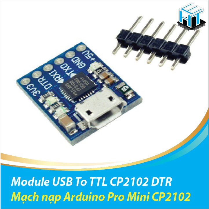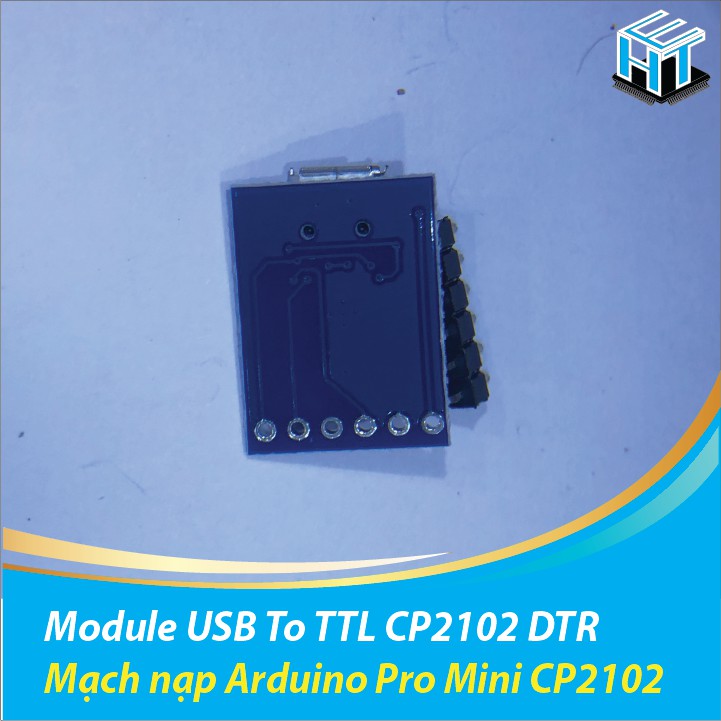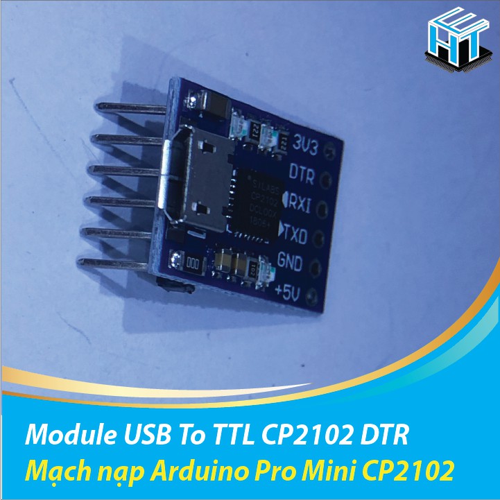 Trên mạch có 6 cổng đầu ra: 3.3V DTR 5V Tx Rx Gnd. Trong đó chân DTR được sử dụng để reset vi điều khiển trong quá trình nạp (tương thích với Arduino Promini).