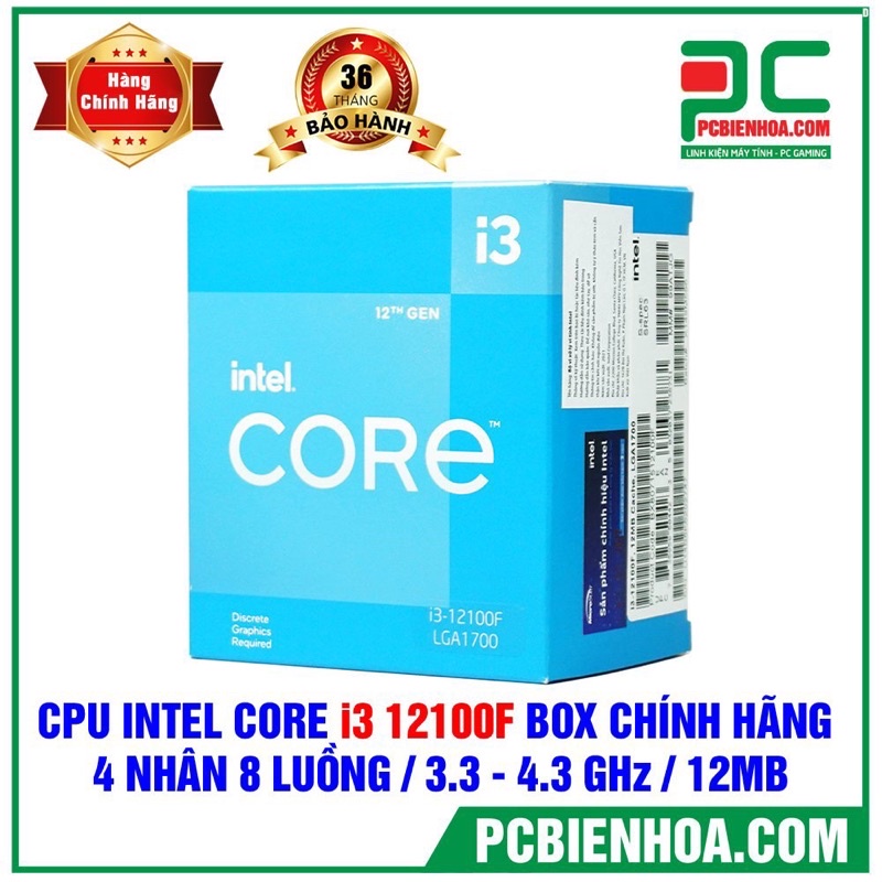 Máy tính & Laptop > Linh Kiện Máy Tính > CPU - Bộ Vi Xử Lý || CPU - Bộ vi xử lý INTEL CORE I3 12100F NEW BOX chính hãng 36TCòn hàng