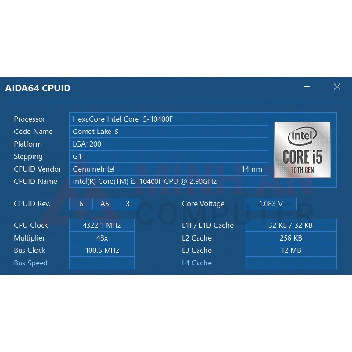 CPU Intel Core i5 10400F (2.9GHz turbo 4.3GHz | 6 nhân | 12 luồng | 12MB Cache)