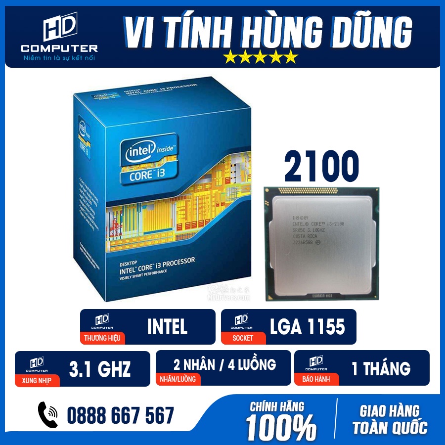 CPU I3 2100 sử dụng được trên các loại main chipset H61, B75, Z68, Z77 và các dòng barbone socket 1155