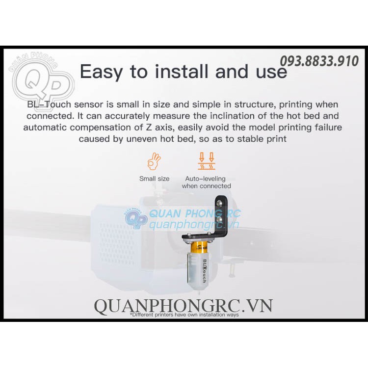 Đặc trưng: Các chức năng và điều khiển chính của BLTouch giống như cảm biến cân bằng tầng tự động thông thường, bao gồm một servo RC và microswitch. Vì vậy, BLTouch có thể được áp dụng trên hầu hết các loại mạch.