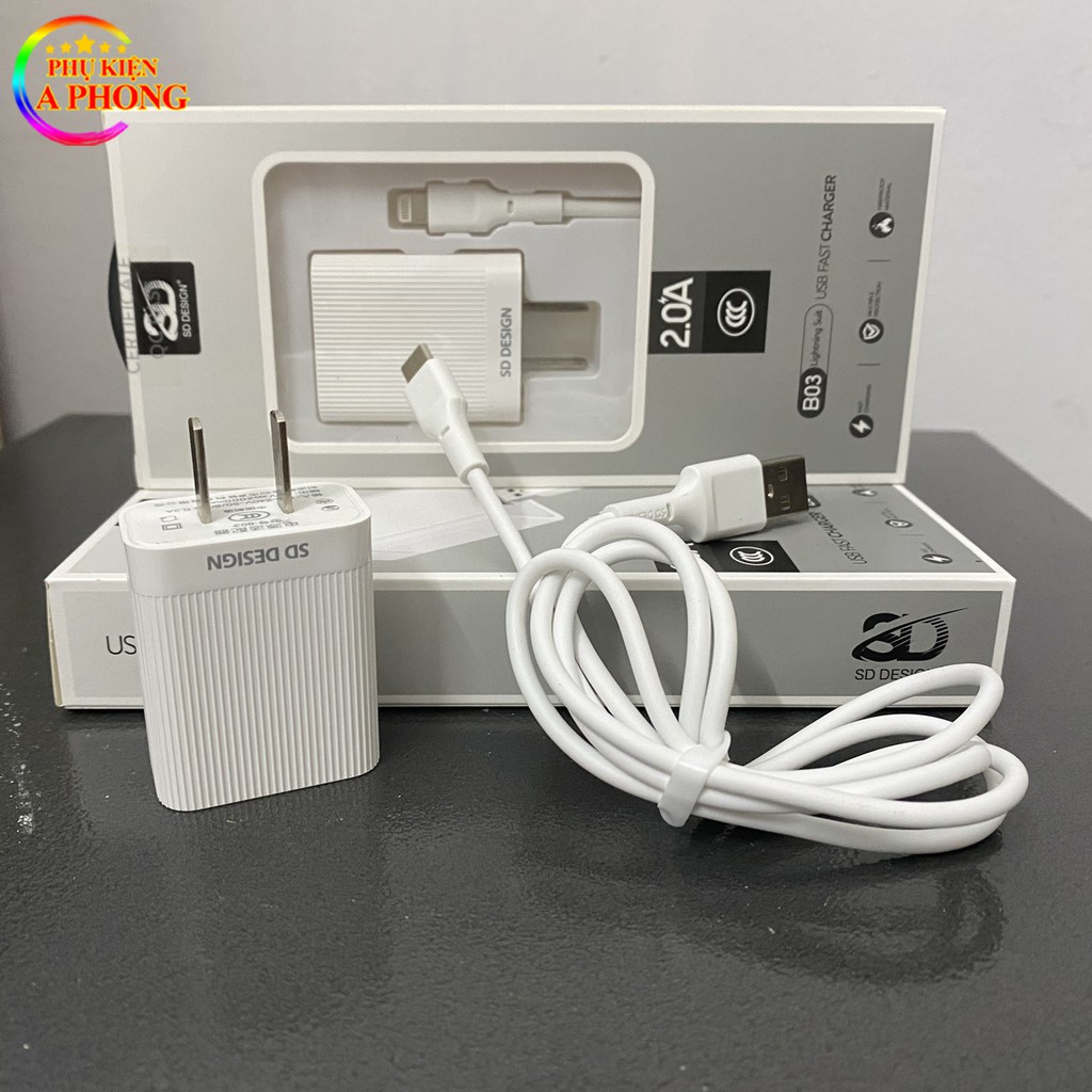 Bộ củ cáp sạc B03 Chính Hãng SD Design Hỗ trợ sạc nhanh Cho điện thoại Pin Dự Phòng Tai nghe Bluetooth Airpods IPhone