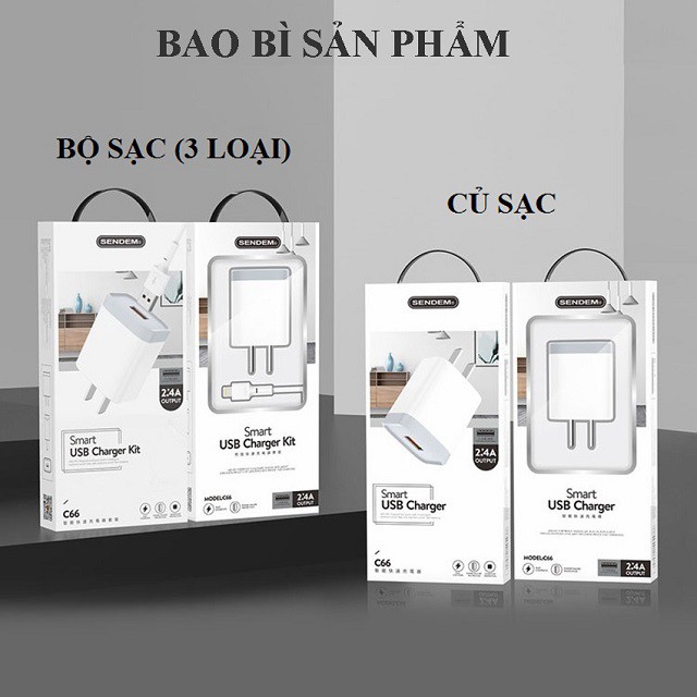 Điện Thoại & Phụ Kiện > Phụ kiện > Cáp, sạc & bộ chuyển đổi > Bộ sạc || Bộ củ cáp sạc nhanh SD Design C66, có 3 loại chân sạc điện thoại iPhone Lightning Micro TypeC Bảo hành 12 ThángCòn hàng