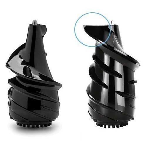 - Trục ép với thiết kế thông minh dễ dàng cuốn thực phẩm từ ống dẫn và bắt đầu quá trình ép của mình. Trục ép lớn, khỏe cho phép ép được các loại rau như: cần tây, cải xoăn...các loại trái cây cứng như cà rốt, ổi, dứa... hoặc dễ dàng chinh phục được những loại trái cây mềm như đu đủ, xoài...