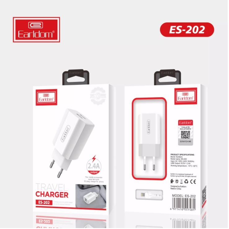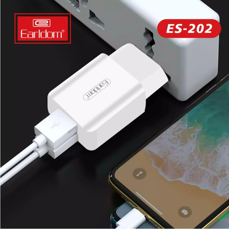 Điện Thoại & Phụ Kiện > Phụ kiện > Cáp, sạc & bộ chuyển đổi > Bộ sạc || Củ sạc 2 cổng USB Earldom ES-202 thiết kế chắc chắn với 2 cổng usb công suất 12WCòn hàng
