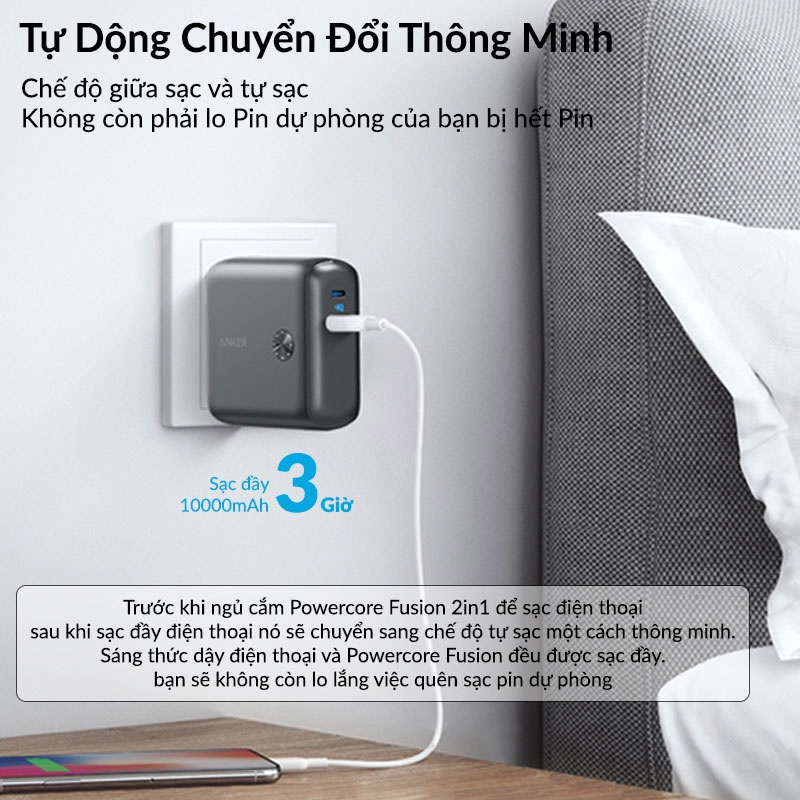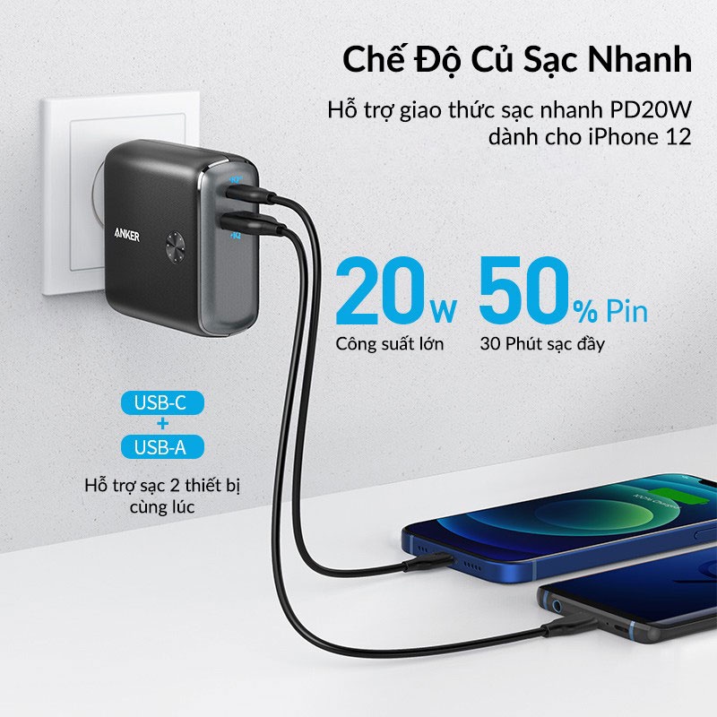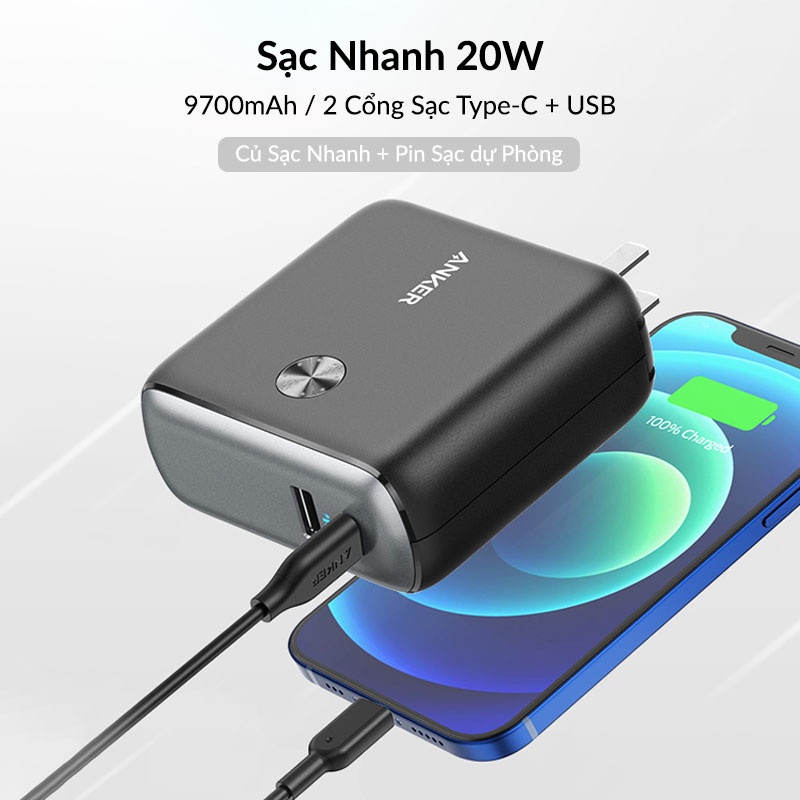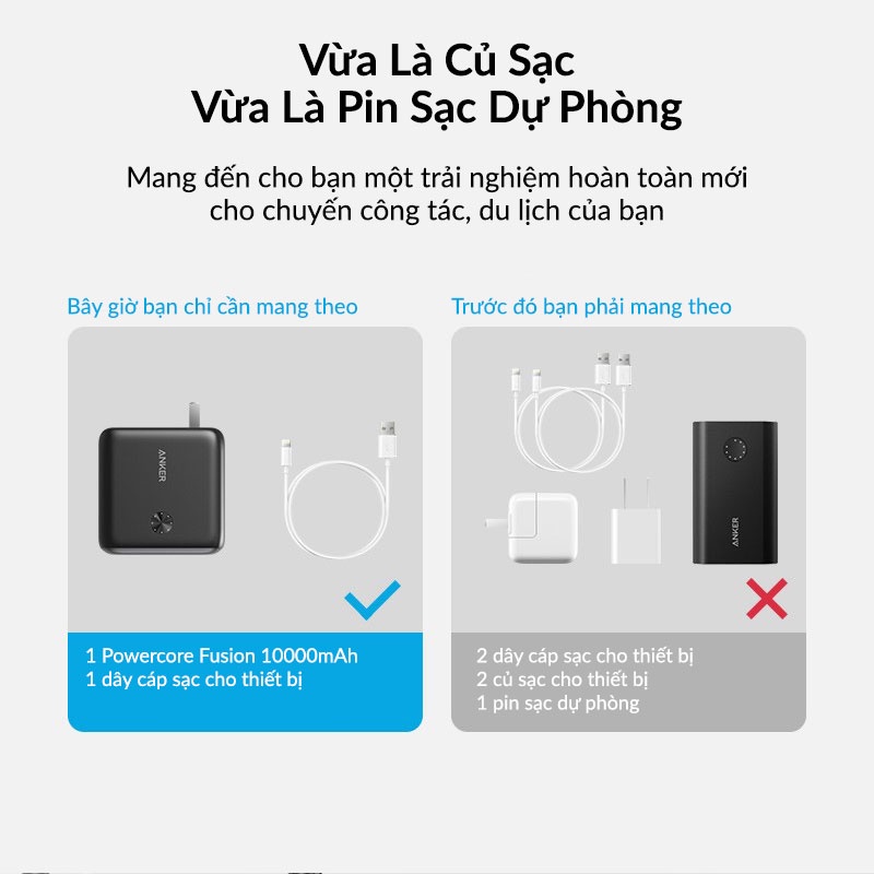 Củ Sạc Anker Powercore Fusion 10000Mah A1623 Hỗ Trợ Sạc Nhanh Pd 20W Kiêm Sạc Dự Phòng 2 Cổng Usb A + Type C