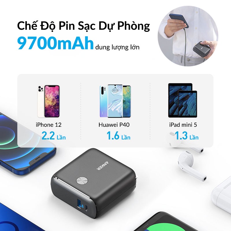 * Sự kết hợp hoàn hảo giữa pin dự phòng và sạc tường trong một sản phẩm.