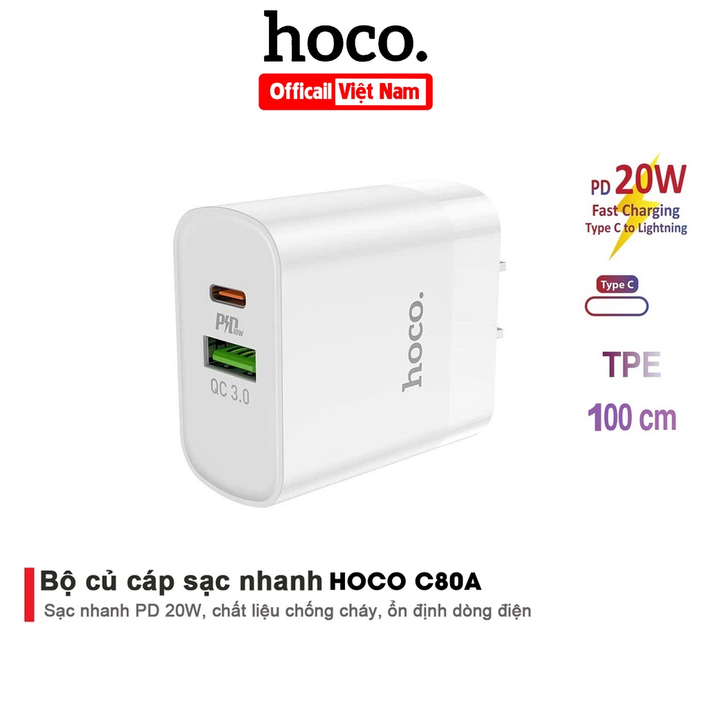 Củ Sạc HOCO C80A sạc nhanh PD20W QC3.0/2.0 Sạc cho Smart phone(> ‿◠) ✌ Kính chào quý khách hàng đến với cửa hàng HOCO Officail Viêt Nam (> ◠) ✌