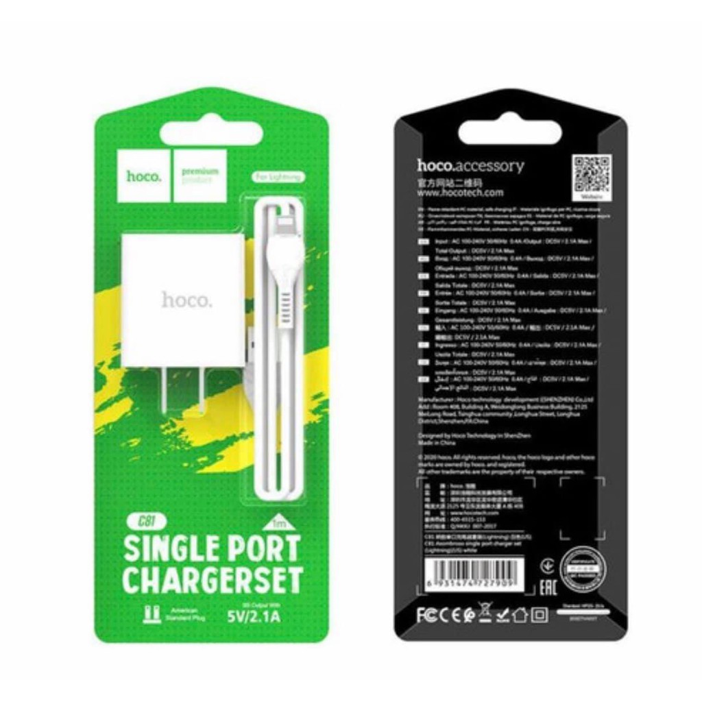 Điện Thoại & Phụ Kiện > Phụ kiện > Cáp, sạc & bộ chuyển đổi > Bộ sạc || Bộ Củ sạc Hoco C81/C81A - Lightning- Micro- TypeCCòn hàng