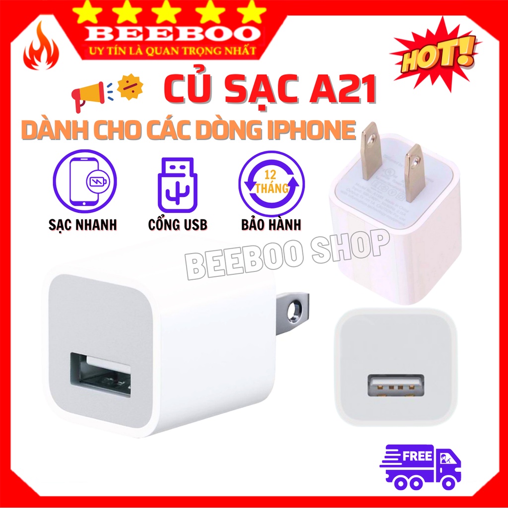 BỘ CỦ SẠC VUÔNG A21 DÀNH CHO IPHONE - ỔN ĐỊNH NGUỒN ĐIỆN - TUỔI THỌ CAOTHIẾT KẾ NHỎ GỌN - TIỆN LỢI