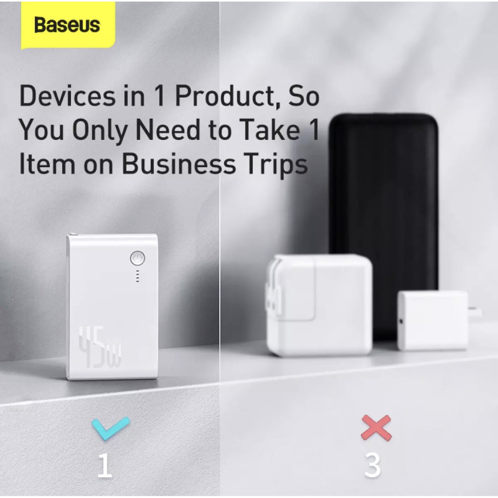 Điện Thoại & Phụ Kiện > Phụ kiện > Sạc dự phòng & Pin > Sạc dự phòng || Củ sạc nhanh Baseus GaN 10000mah kiêm pin sạc dự phòng Power Station 45W 2 in 1 PD/QC3.0Còn hàng