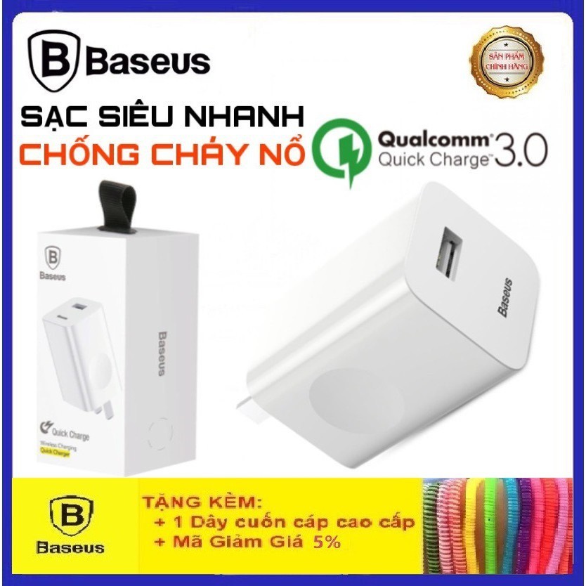 Củ sạc nhanh 3A24w cho iphone và android công nghệ sạc nhanh quick charge 3.0 chống cháy nổ chính hãng baseus