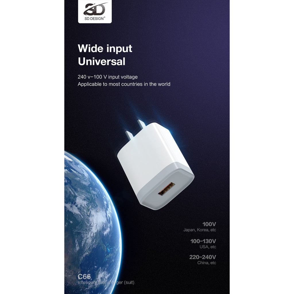 Giới thiệu Củ sạc SD C66 cổng USB 2.4A, cóc sạc dùng cho iPhone, iPad, Android - Chính hãng