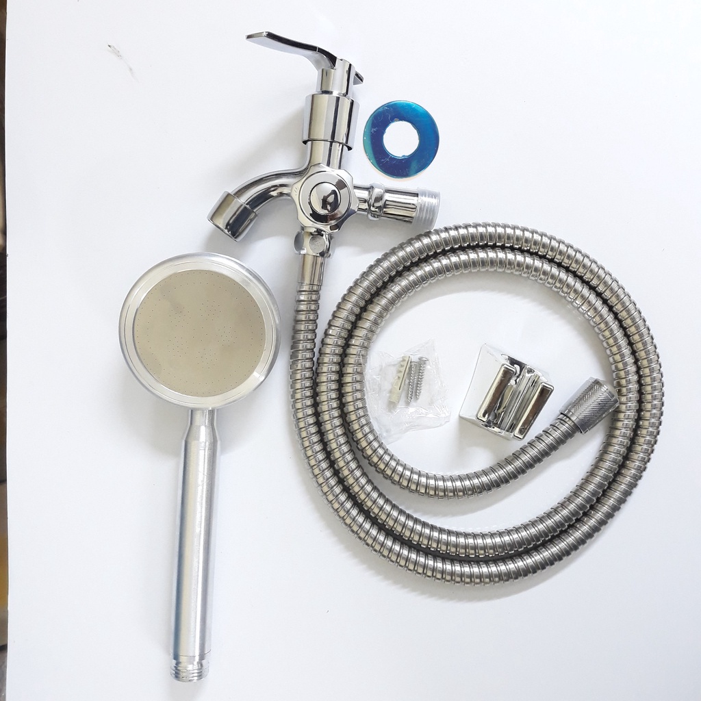 Bộ củ sen 1 đường nước lạnh kèm tay sen tăng áp hợp kim nhôm chống oxi hóa siêu tiết kiệm nước đủ bộ Củ sen+tay+dây+cài