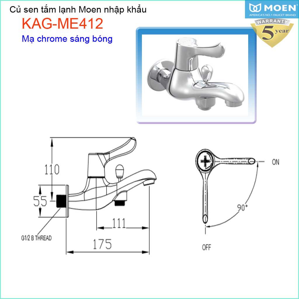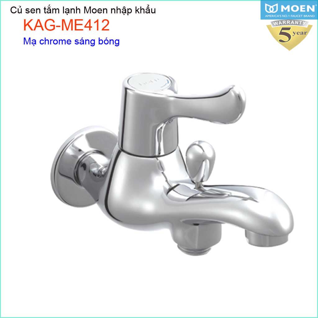 Củ sen tắm lạnh, vòi sen lạnh Moen KAG-ME412Chất liệu: Củ sen tắm lạnh, vòi sen lạnh Moen KAG-ME412 nhập khẩu nguyên chiếc 100% từ nhá máy sản xuất của tập đoàn MOEN, thương hiệu hàng đầu của American, Vòi MOEN đạt chuẩn chất lượng cao đáp ứng mọi yêu cầu của các khách hàng trên toàn thế gới.