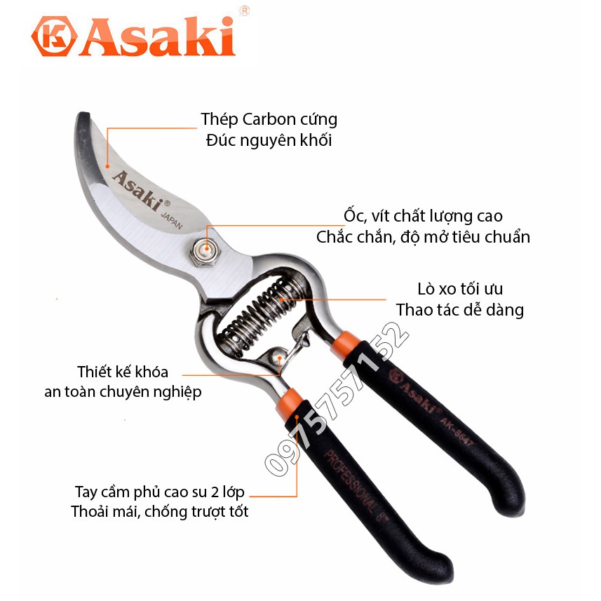 - Kéo tỉa cành cán đúc Asaki chuyên dùng để cắt cành, tỉa cành.