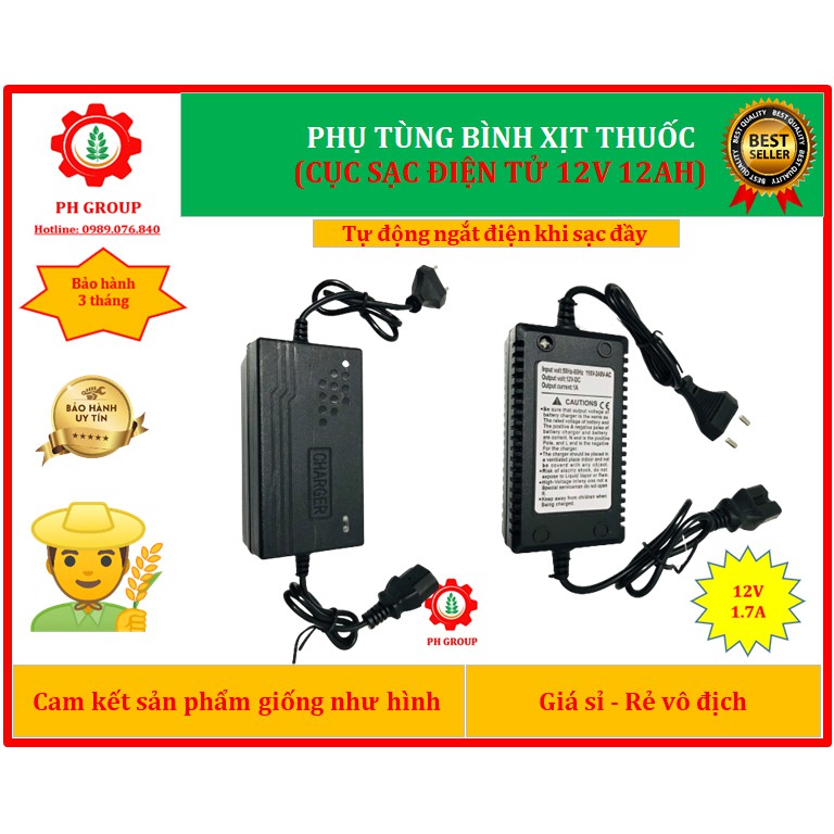 Cục sạc điện tử dùng cho Bình phun thuốc trừ sâu bằng điện |12V 12AH | 1.7 Ampe| Tự ngắt khi sạc đầy | Bình xịt điện