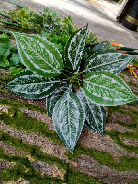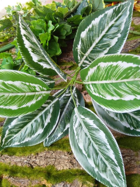 Cụm lá giả trang trí , làm tường cỏ, phụ kiện cắm hoa lụa, trang trí sự kiện...Cụm cao 35 cm, lá dài khoảng 15cm chất liệu vải ép, cành nhựa lõi thép dễ uốn.
