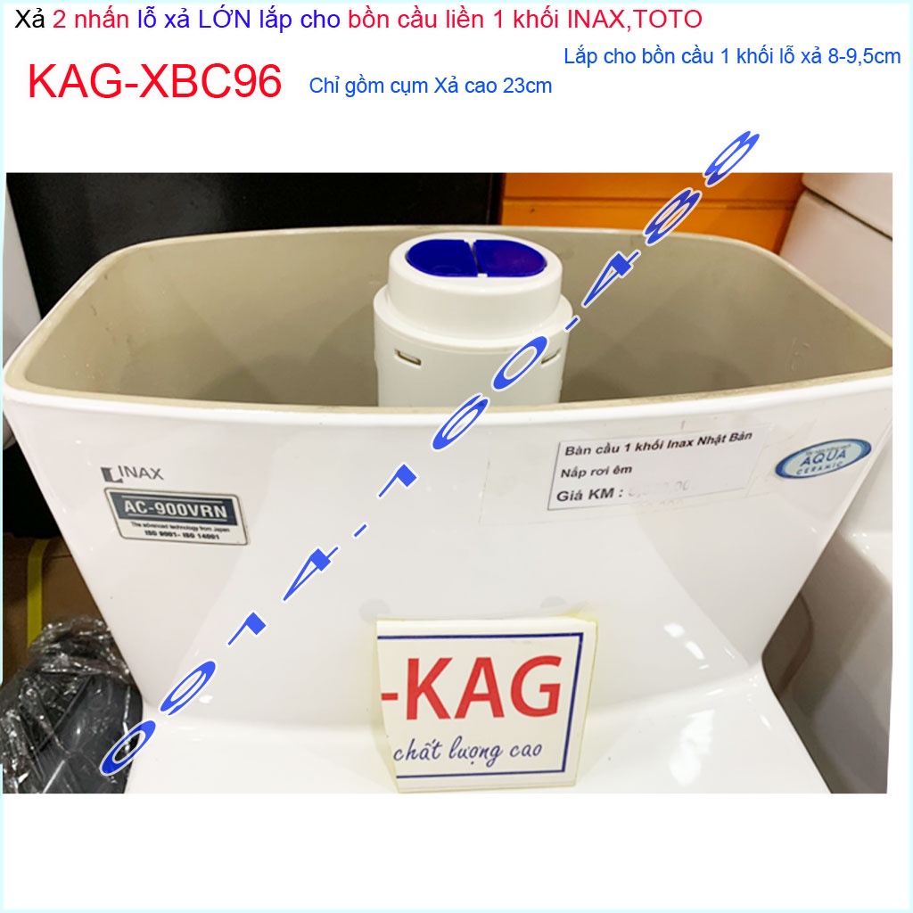 Cụm xả bồn cầu KAG-XBC96-cao 23cm cho Cầu Linax C909 cầu Toto C885, xả 2 nhấn cầu liền khối lỗ thoát sứ 8cm-9.5cm nhấn êm siêu bềnTHAY THẾ CHUYÊN CẦU 1 KHỐI LINAX VÀ TOTO VÀ CÁC CẦU CÓ LỖ XẢ LỚN ( LỖ XẢ SỨ TỪ 8CM-9.5CM)
