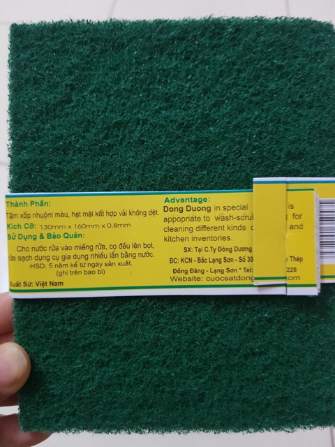 Nhà cửa & Đời sống > Dụng cụ chăm sóc nhà cửa > Miếng bọt biển, miếng chà vệ sinh || Tấm cước chùi rửa đa năng Đông Dương(12.5x15.5x7.5cm)Còn hàng