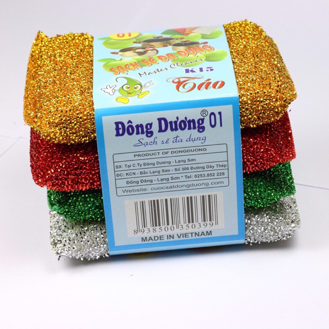 Miếng rửa chén kim tuyến Đông dương, sạch sẽ đa dụngThành phần: sợi nilon, sợi dún, mút xốp