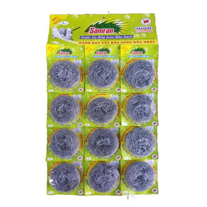 Nhà cửa & Đời sống > Dụng cụ chăm sóc nhà cửa > Miếng bọt biển, miếng chà vệ sinh || Cước sắt cọ nồi (Dây 12 miếng Sam ram)Còn hàng