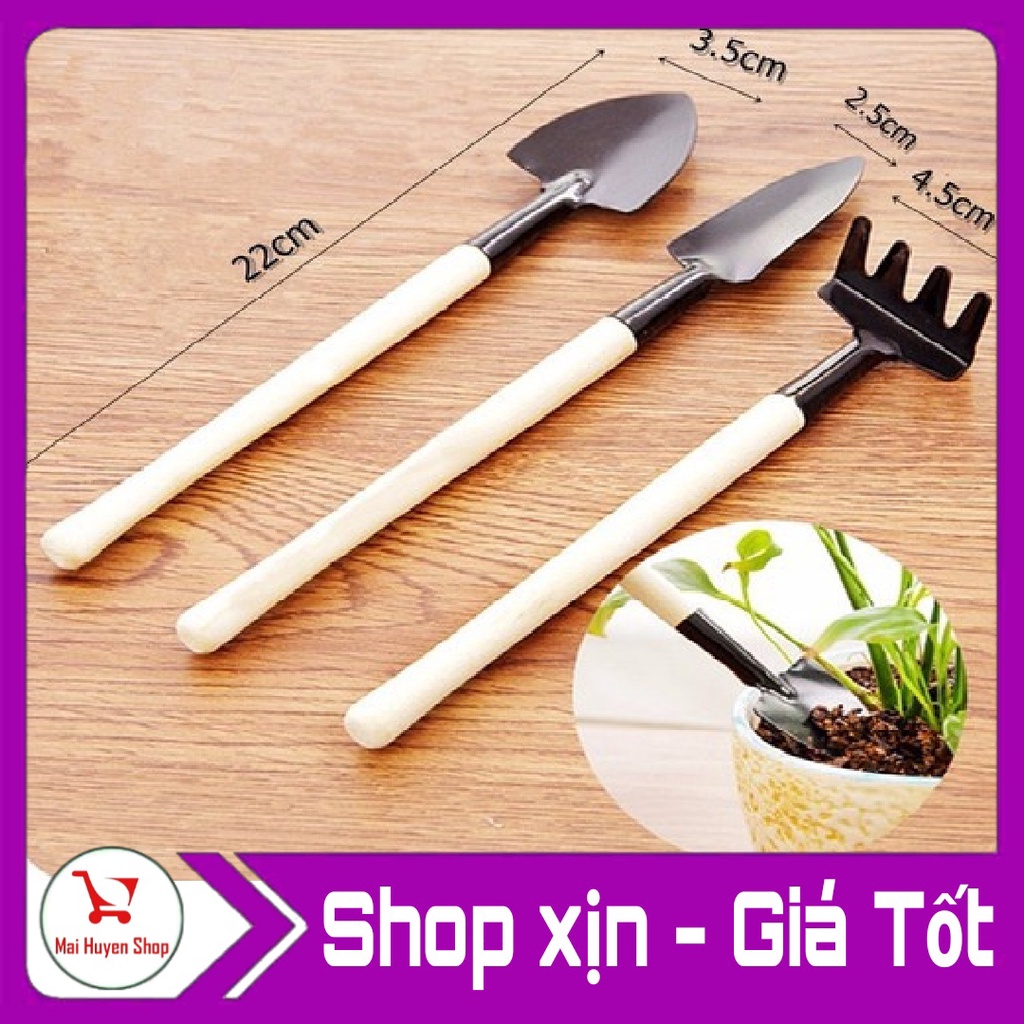 - Bộ dụng cụ mini làm vườn 3 món gồm 1 xẻng, 1 xúc, 1 cào, sử dụng tiện lợi, kiểu dáng đẹp, nhỏ gọn. Chúng được làm bằng sắt sơn tĩnh điện rất cứng bạn tha hồ đào, xới, trộn không bị gẫy. Đồng thời tay cầm được bao bọc bằng gỗ điều này giúp bạn không bị trơn tuột trong quá trình làm vườn.