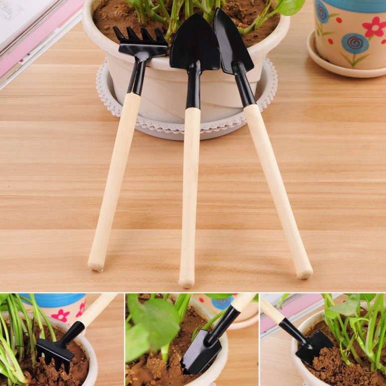 Bộ cuốc xẻng mini trồng cây cảnhTrọn bộ sản phẩm gồm 3 sản phẩm: cuốc, xẻng và cào