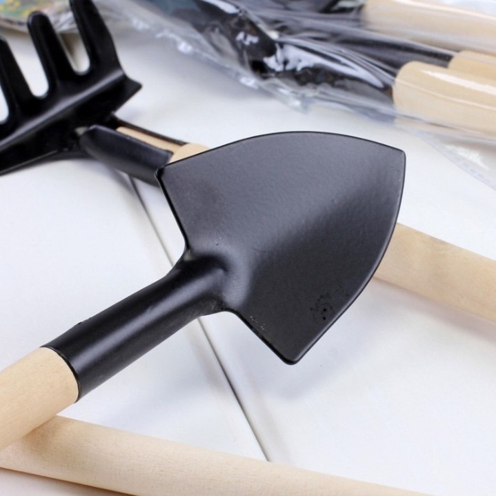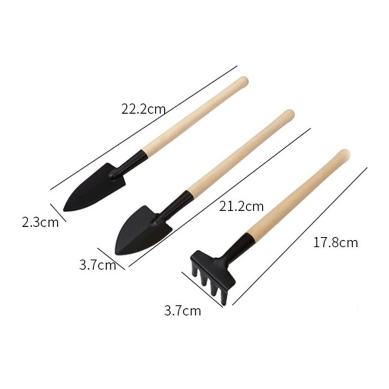 – Bộ dụng cụ chăm sóc cây cảnh gồm: 1 xẻng lưỡi ngắn 21cm, 1 xẻng lưỡi dài 22cm và 1 cào đất 18cm– Chất liệu: Cán bằng gỗ, lưỡi bằng kim loại
