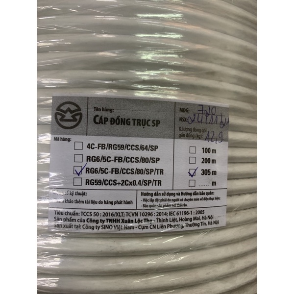 Thiết Bị Điện Gia Dụng > Tivi & Phụ kiện > Khác || [Mã 44ELSALE2 giảm 7% đơn 300K] Cuộn 305m Dây Cáp Đồng Trục Sino không liền nguồnCòn hàng