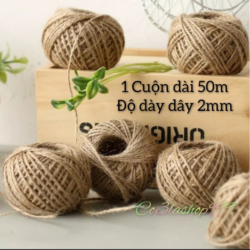 Cuộn dây thừng 50m, 100m, độ dày dây 2mm, dùng làm đồ handmade, treo trang trí