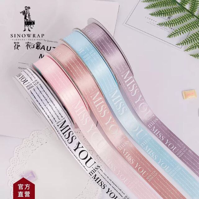 Cuộn duy băng chữ MISS YOU kiểu Hàn Quốc dài 50m khổ 2,5cm