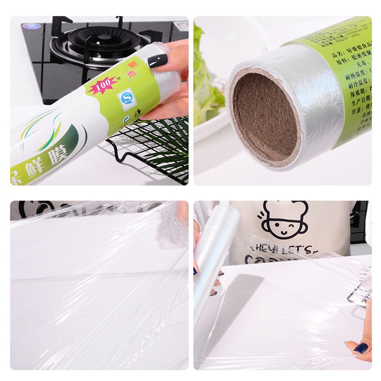 - Chất liệu: Màng bọc thực phẩm được làm từ chất liệu nhựa PVC đã được biến tính kỹ không gây độc hại cho thực phẩm, màng bọc dai dễ bám vào: Ly, cốc, đồ gốm, đồ nhựa, Thủy tinh…