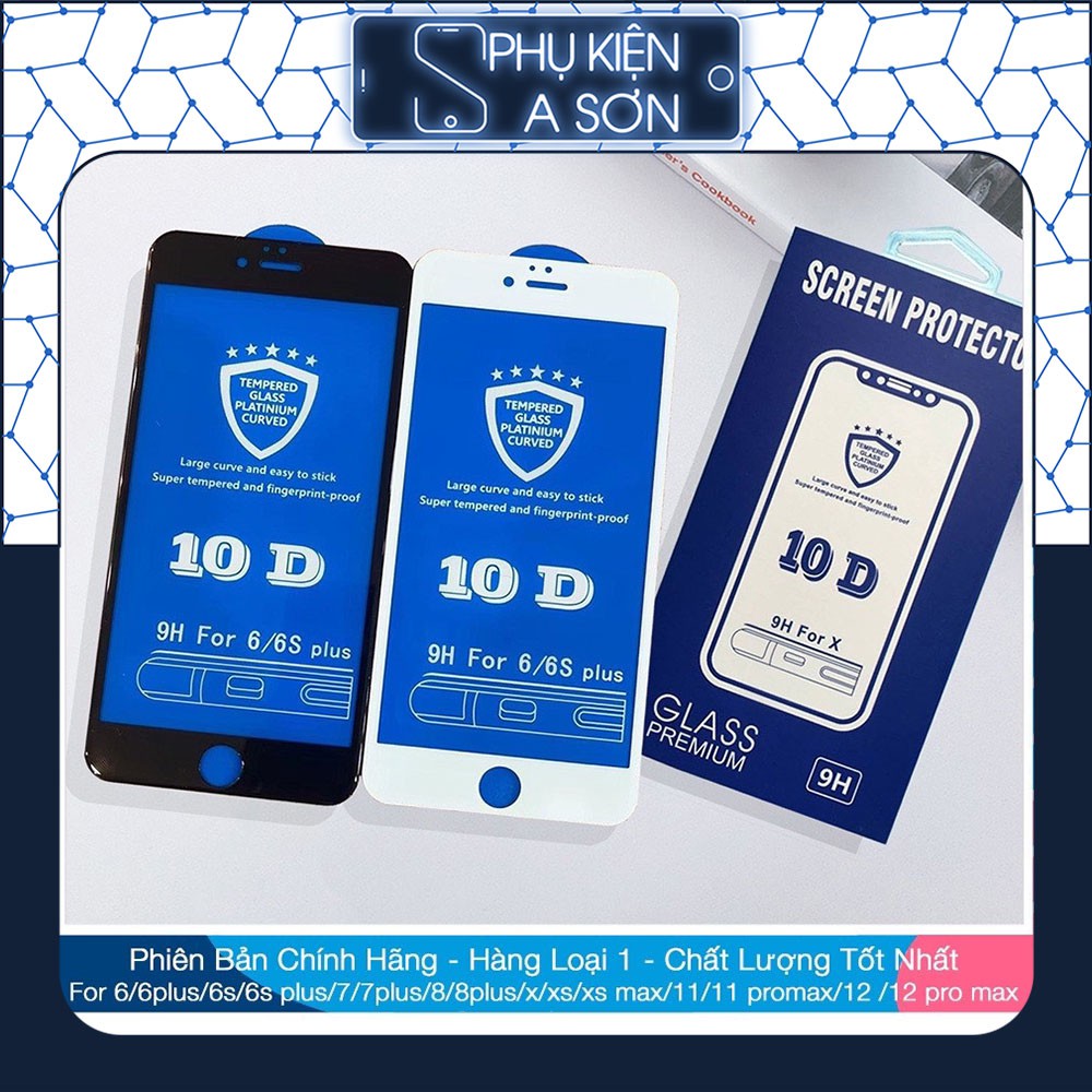 Cường lực 10D iphone 6/6s/6Plus/6sPlus/7/8/7Plus/8Plus/X/Xs/XsMax Full màn cực chất (tặng khách giấy lau Khô - Ướt)