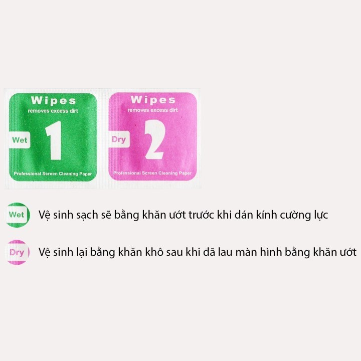 Tặng kèm miếng lấy bui, khăn lau khô ươt, keo chống hở viền.Cường lực full màn hình độ cứng 9H hai lớp siêu bền chống vỡ, chống xước.