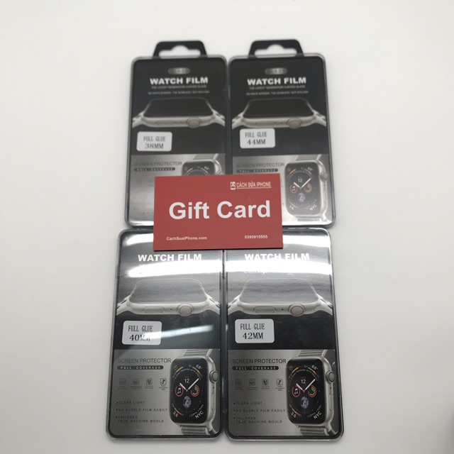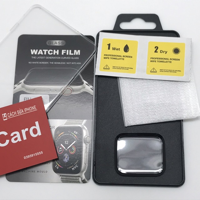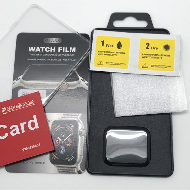 Cường Lực Full Màn Hình A pple W atch đủ các cỡ, các serial của A pple W atch.Sản phẩm bao gồm: hộp, miếng lau, Cường Lực full màn hình A pple W atch.