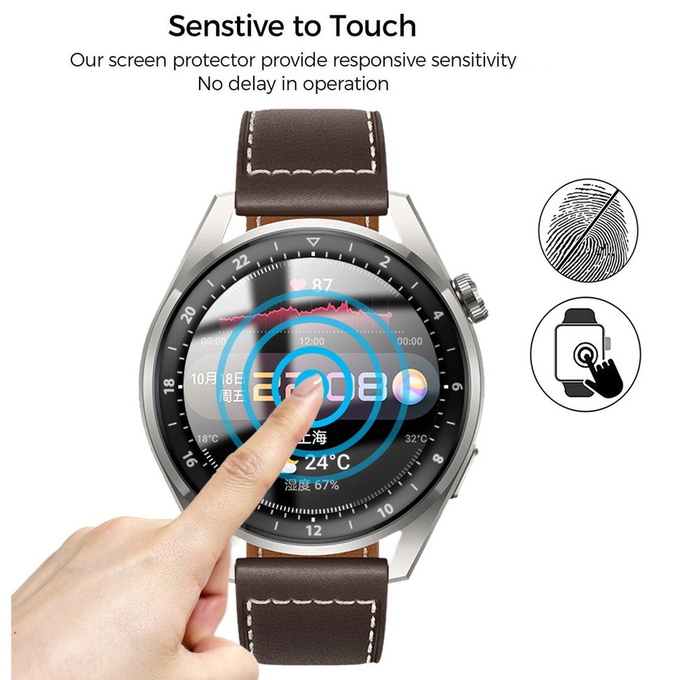 - Cường lực dẻo 3D full màn hình Huawei Watch 3 và Watch 3 Pro chống bám vân tay, không bị ố vàng, bền màu theo thời gian.