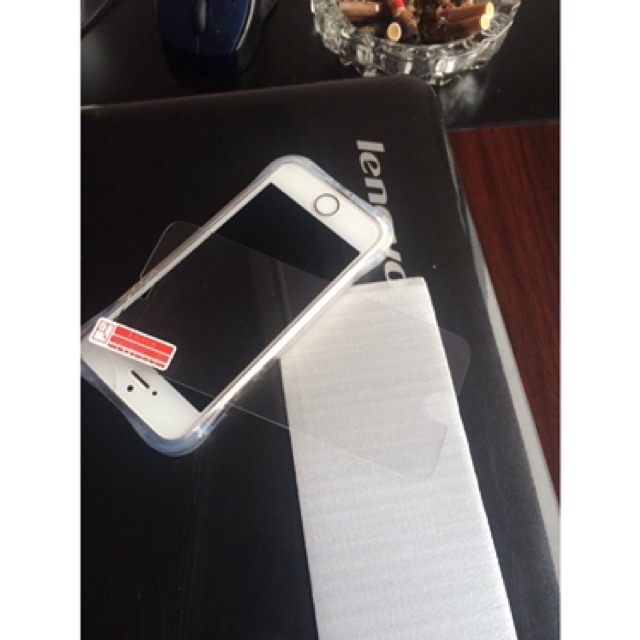 Dùng 2 mẩu băng keo cố định miếng dán lên màn hình iphone cho khớp với camera, cảm biến, nút home, canh cho thật chuẩn bạn nhé. Băng keo giấy càng tốt vì loại này lấy bụi đi và không để lại keo trên màn hình.