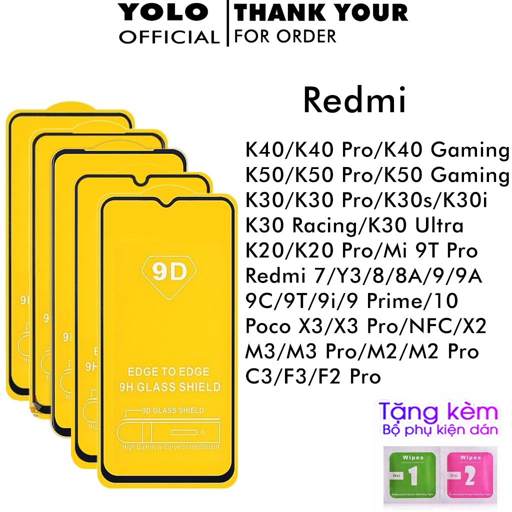 Cường lực Redmi K40 Pro K40 Gaming K30 K20 Mi10 9 9A 9C 9T 8A Y3 Poco X2 X3 Pro M2 M3 Pro C3 F3 F2 Pro Full Màn [THF]