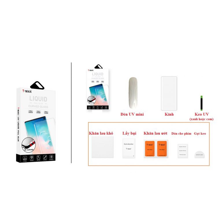 Cường lực Uv T-Max Samsung Note 10 - Note 10 Plus - S10 - S10 Plus - S10 5G (Full bộ)