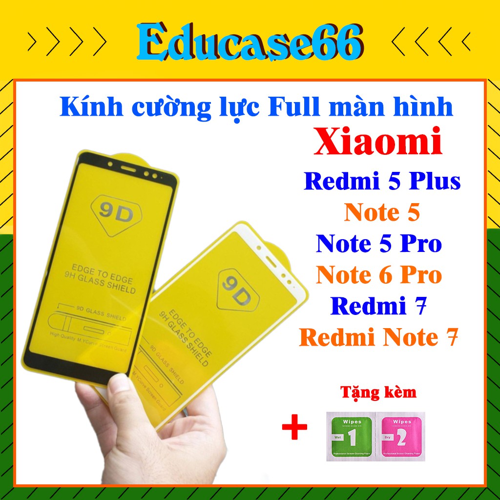 Cường lực XIAOMI REMI 5 PLUS,NOTE 5,NOTE 5 PRO,NOTE 6 PRO,REDMI 7,NOTE 7, Tặng kèm giấy lau kính ướt và khô EDUCASE66